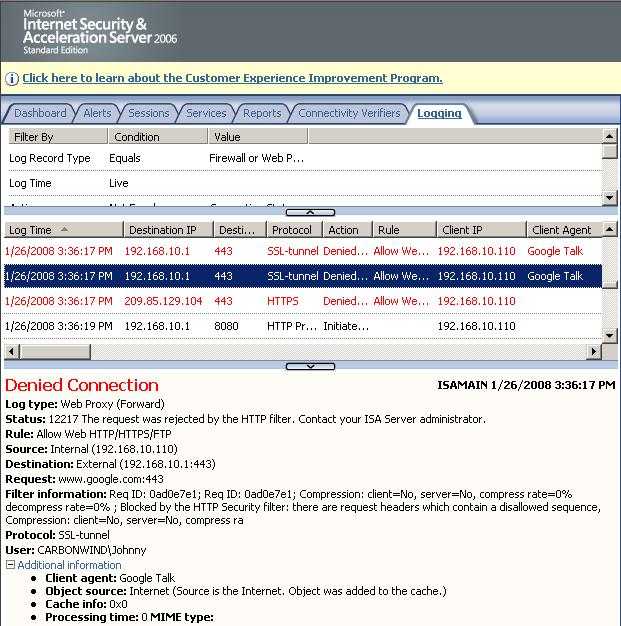 Figure50: ISA Log Google Talk Blocked, Really ?