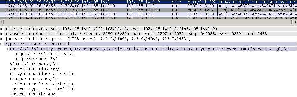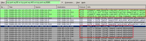 Analyzing the Wireshark capture we can find out more. First we can notice that ISA blocks the "Connect www.google:443" request because it contains the User-Agent "Google Talk". See Figure52.