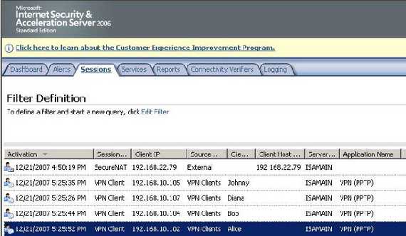 Figure3: ISA Monitoring Sessions L2TP/IPsec