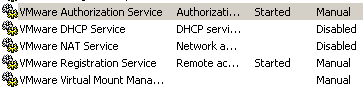 Also in order to minimize the number of services automatically started on the host machine, I've disabled "VMware DHCP Service" and "VMware NAT Service" (I do not need them) and set VMware Authorization Service" and "VMware Registration Service" "Startup Type" to "Manual", so I can start them manually when I want to use VMware Server. Also "VMware Virtual Mount Manager Extended" service was set to "Manual" "Startup Type". According to this VMware document, "VMware Virtual Mount Manager Extended" service is used by VM Importer 1.x, DiskMount 3 (GSX), and DiskMount 5.5 (Workstation), and if you do not use these VMware products you can ignore it.