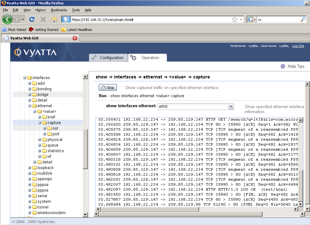 Some fear about web GUIs because they may be slow, but this is not the case of Vyatta’s GUI, as it’s pretty fast.