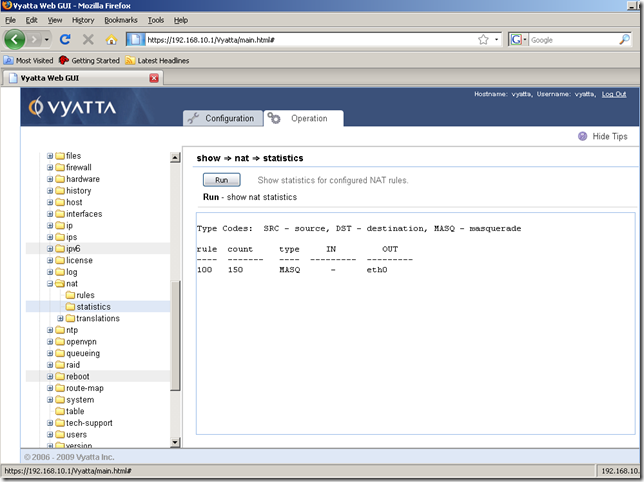 For the moment Vyatta recommends us to use Firefox 3 for a better experience with the GUI, IE 7 is also supported. And Vyatta tells us that the browser compatibility list will be improved over the time.