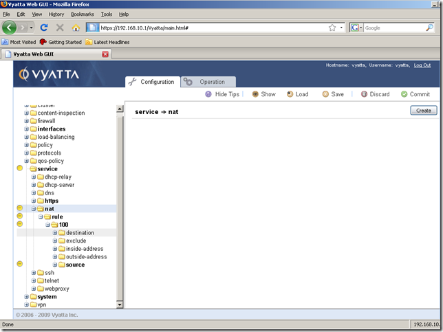 In part two we will configure something using the GUI. Say add a NAT rule and a default route so that a host behind this Vyatta to access the Internet. And setup some firewall rules.